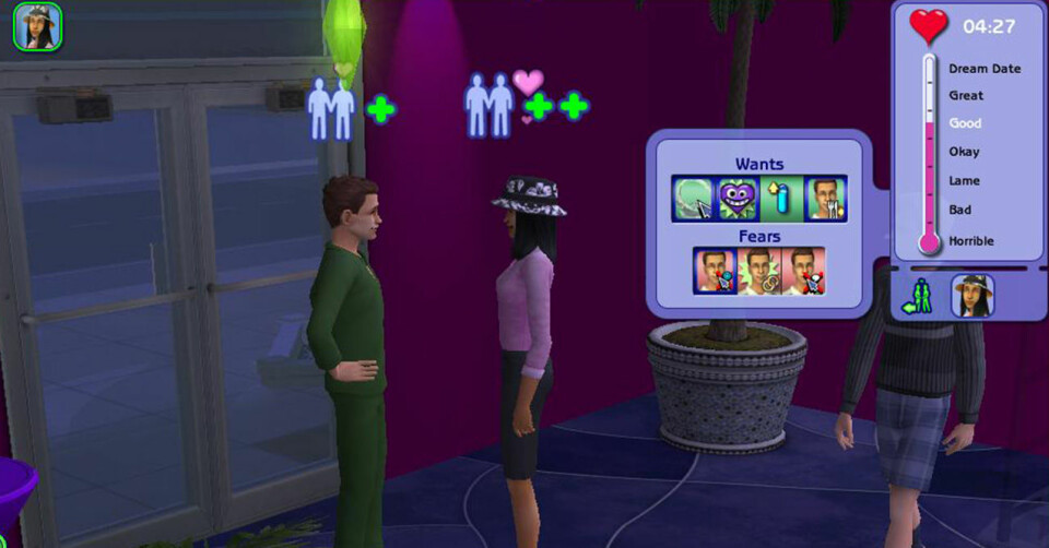 För att din sim skulle kunna träffa en livspartner och skaffa barn var dejtandet avgörande! Och hur spännande var det inte att gå på en första dejt? Du fick slita hårt för att både din sim och den andra simen skulle trivas och ha det trevligt. Snabbt gick relationen från ”visa uppskattning” och ”kittla” till ”hångel” och ”myspys”. BINGO!
