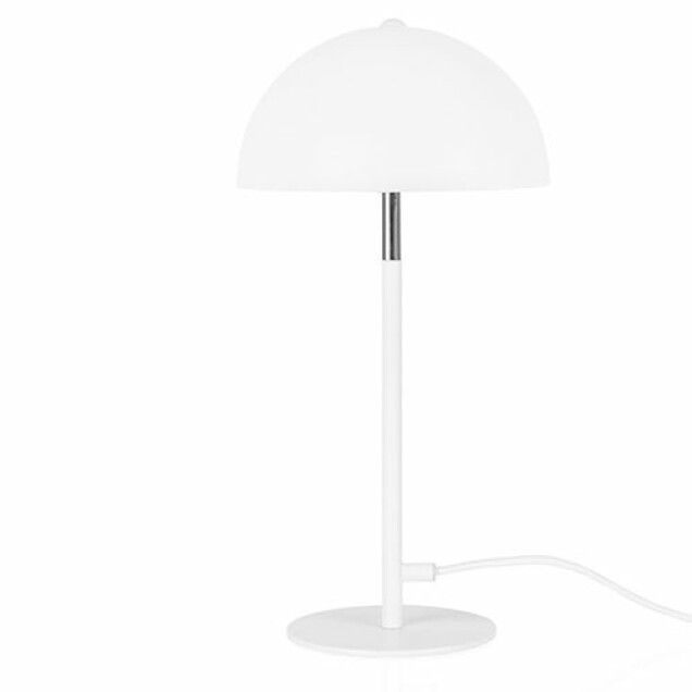 Bordslampa från Globen Lighting i matt vitlackerad metallskärm och fot med kromade detaljer. Skärmen är vinklingsbar och perfekt som läslampa på skriv-, soff- eller sovrumsbordet. Du kan köpa den här.