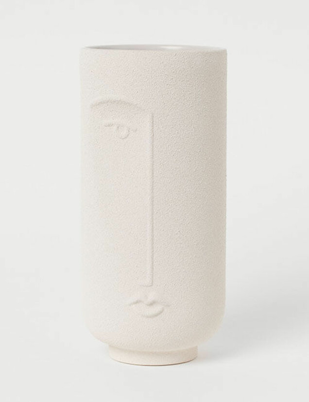 En vit vas formad som ett ansikte i keramik från H&M Home. Här kan du köpa den.