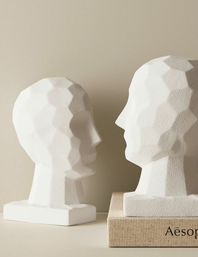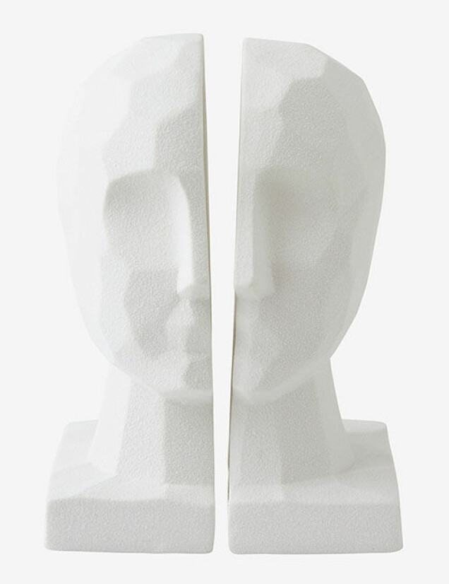 Vitt bokstöd format som ett huvud i två delar, perfekt att inreda bokhyllan med från Ellos Home. Här kan du köpa det.