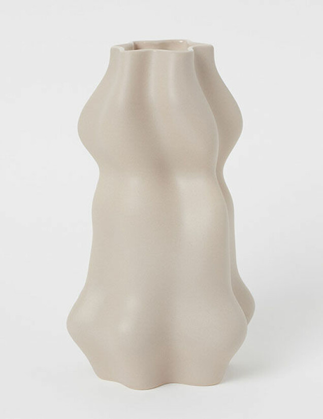 En stor naturvit symmetriskt formad vas i glaserad keramik från H&M Home. Här kan du köpa den.