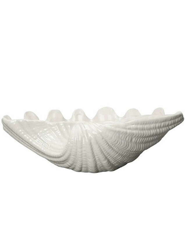 En vacker vit serveringsskål för frukt, skaldjur eller sallad formad som en snäcka. Här kan du köpa den.