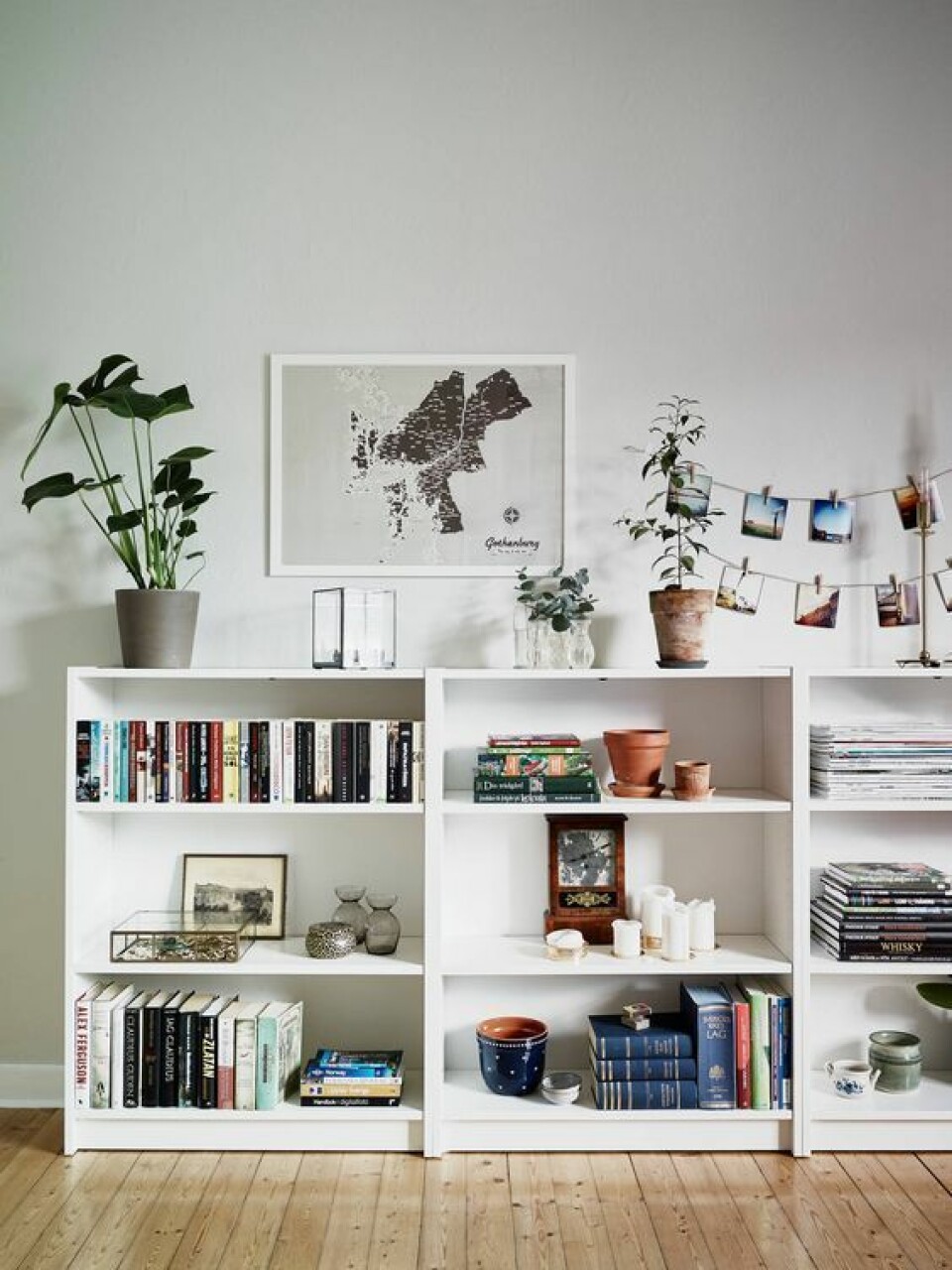 Bor du lite mindre och är orolig för att en hyllvägg kanske gör att hemmet känns trängre är den mindre Billyhyllan perfekt. Ställer du upp ett par bredvid varandra får du bra förvaringsyta utan att det känns för påträngande. Dessutom är det perfekt att ställa krukor eller andra dekorationer ovanpå. Hur snyggt som helst!
