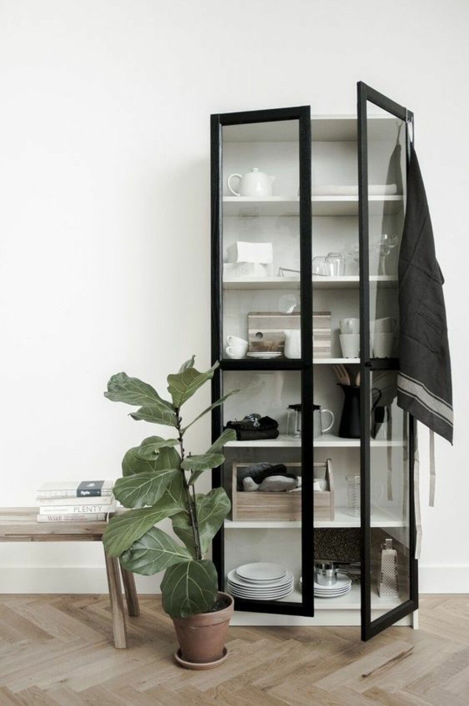 En helt vit hylla kanske kan kännas lite väl enkel ibland. Till Billy går det att köpa till dörrar och om du passar på att måla dem i sobert svart får du direkt en helt ny bokhylla. I den här utformningen passar hyllan dessutom perfekt i köket eftersom den påminner om ett gammeldags serveringsskåp.