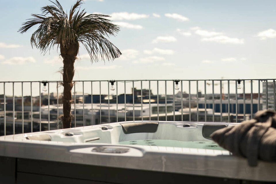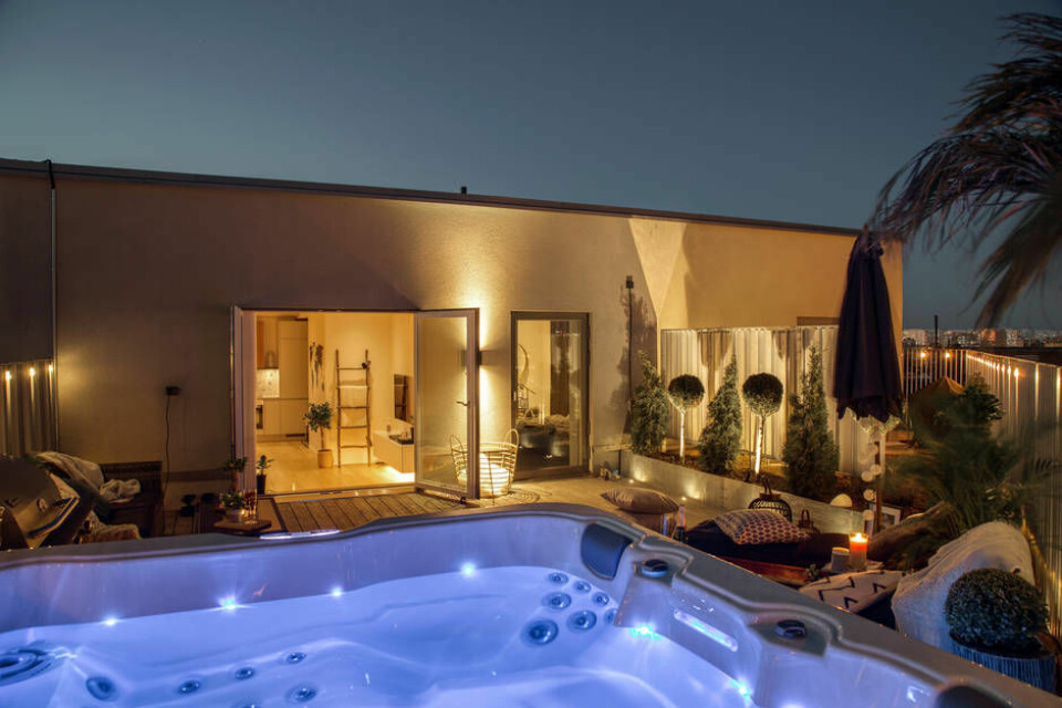 Terrassen, som är på hela 44 kvadratmeter, har en fantastisk utsikt och dessutom en spa-avdelning för upp till 6 personer.