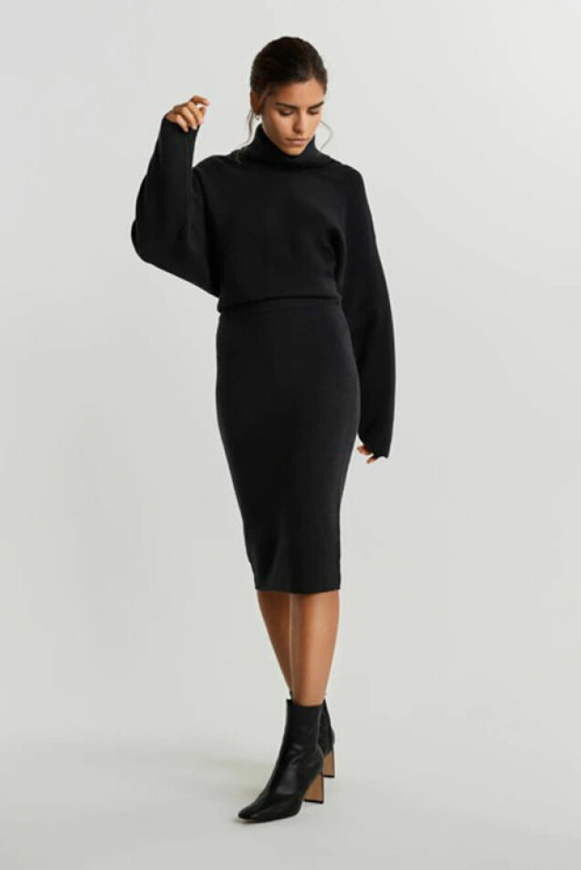 Stickad kjol i svart nyans med ribbmudd i midjan från Gina Tricot. Här kan du köpa den.