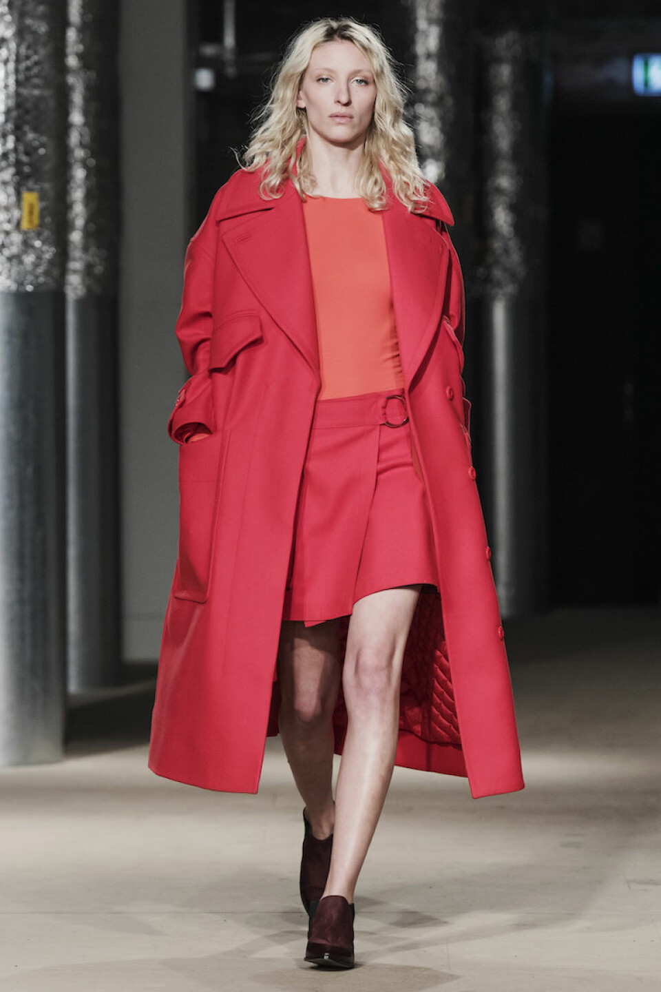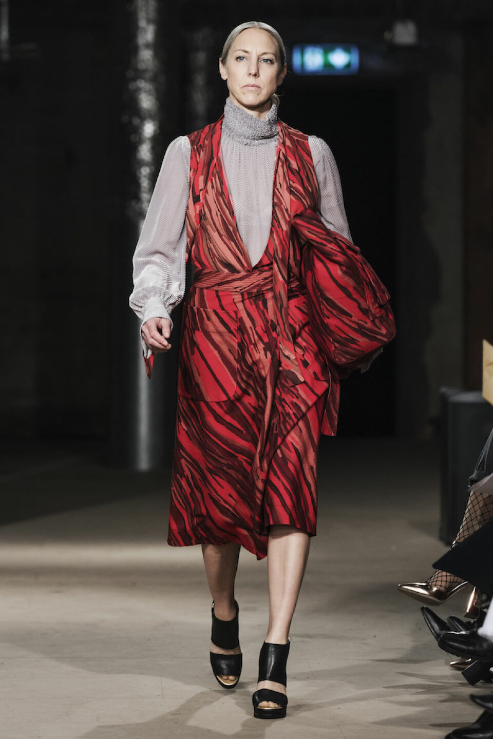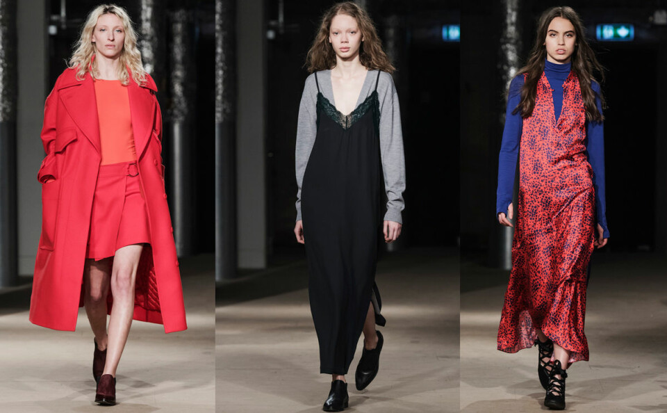 House of Dagmar bjöd in till visning på Textilhögskolan. Bland looksen hittade vi flera röda accentdetaljer blandat med bara axlar, mycket polokrage och skandinavisk lager på lager-design.