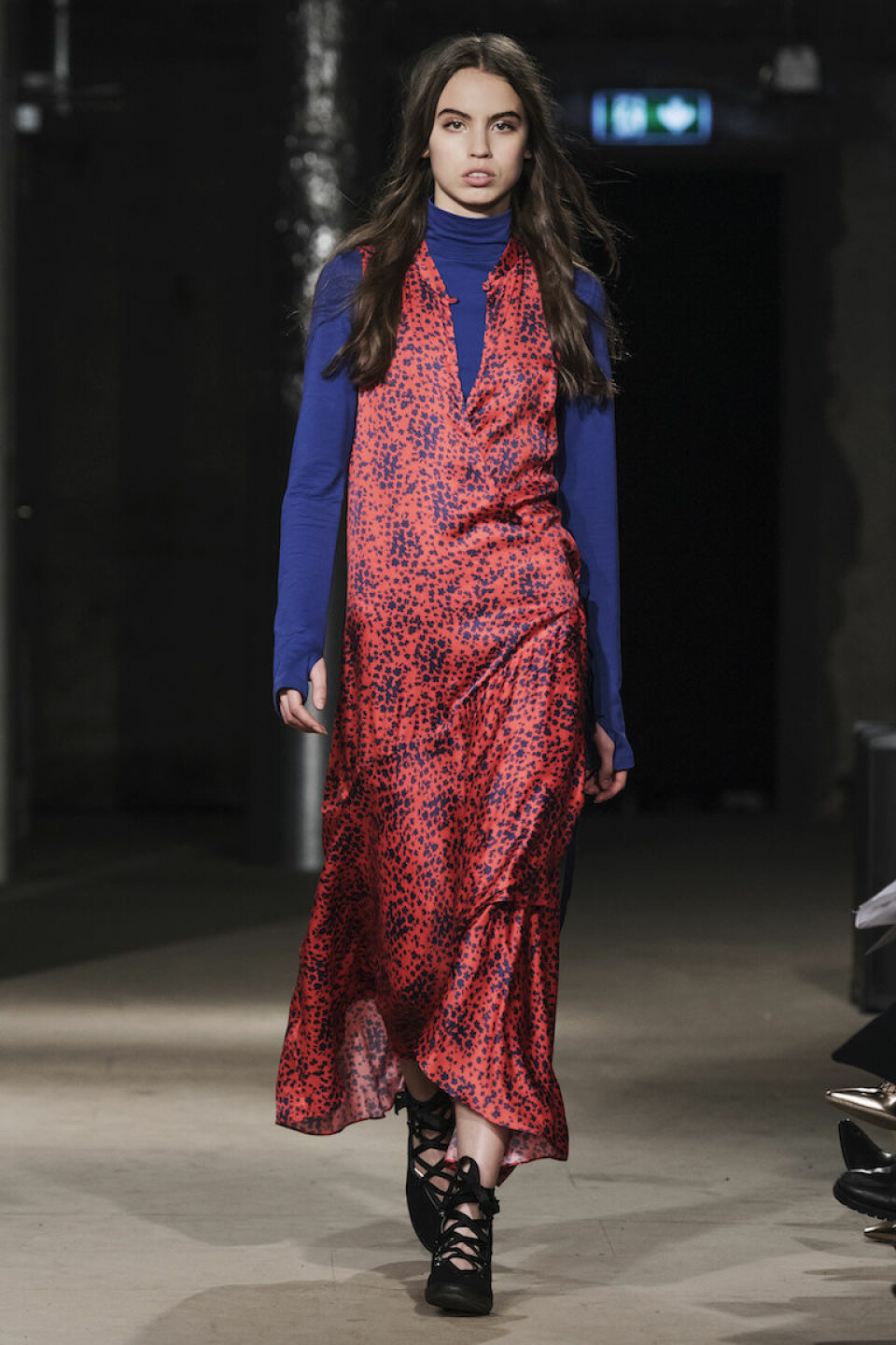 Rodebjer kombinerade lila och rött i sin höstkollektion med mycket fokus på fylliga silhuetter i form av volanger och kråsblusar. Slipklänningen är ett givet trendplagg även i hösten 2017 – om man frågar Rodebjer (och vi håller med!).
