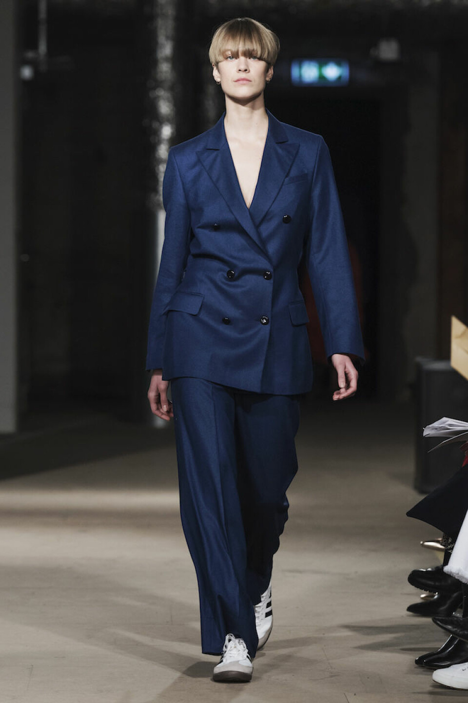 Naim Josefi visade upp skandinavisk minimalism med inslag av denim i sin höstkollektion. Sportiga influenser mötte höga slitsar och klassiska inslag. Visningen avslutades med en glitterfest utan dess like, klänningarna går närmast nog att beskrivas som discokulor.