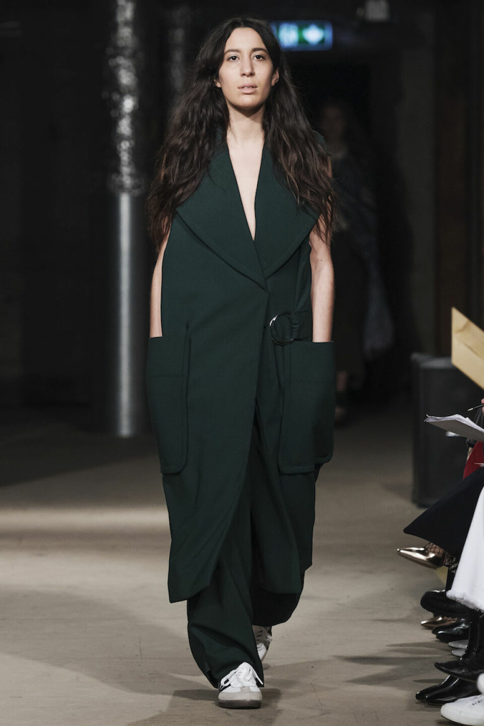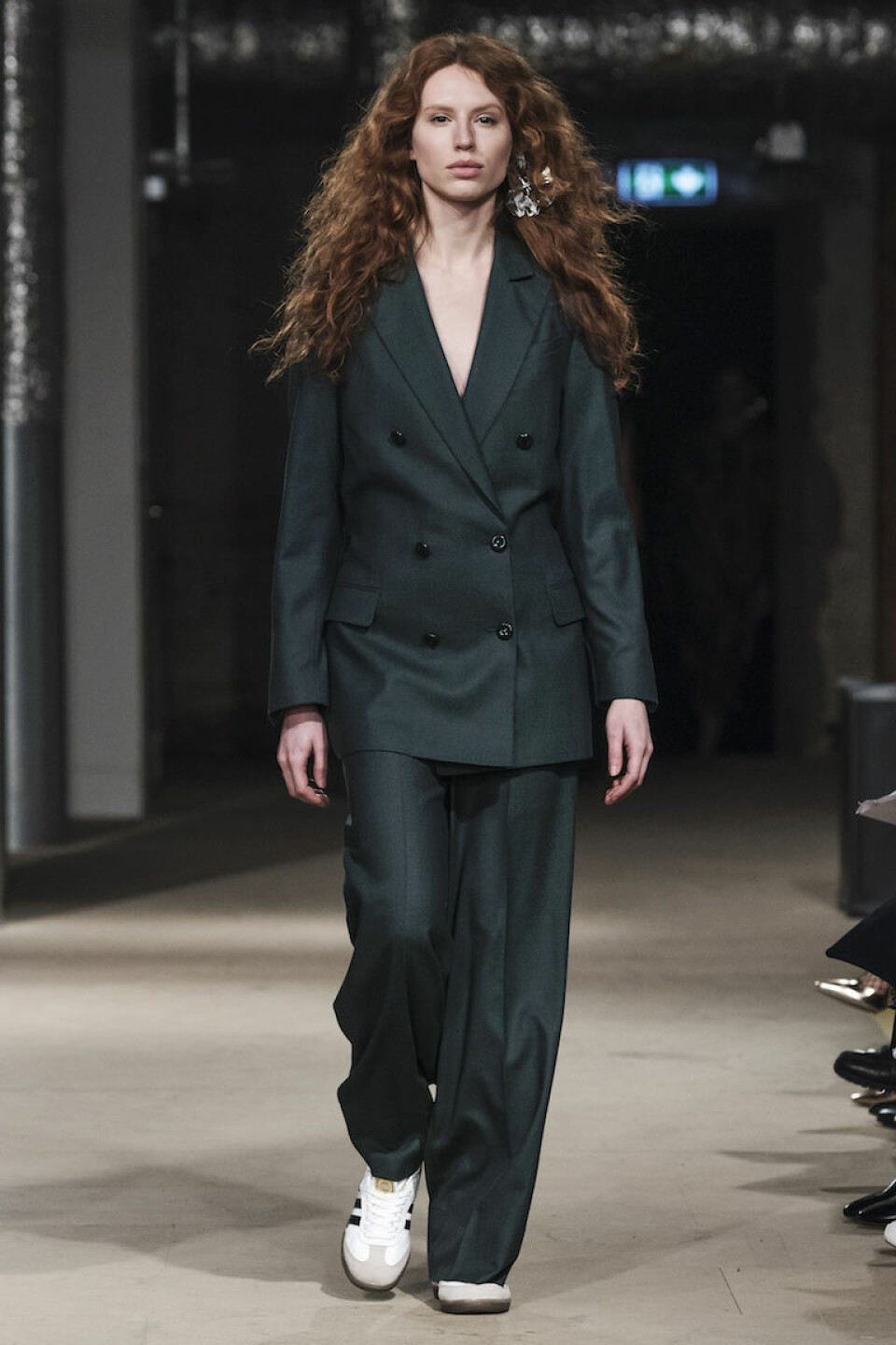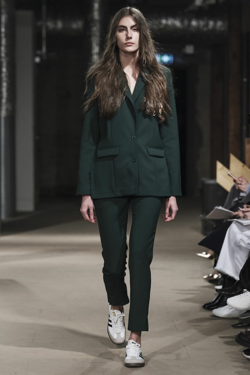 Hunkydory presenterade en höstkollektion med flera starka och lättburna nyckelplagg. Sammetskostymen är tillbaka i en mörkgrön variant – en färg som löpte som en röd (grön!) tråd genom visningen. Hunkydorys karaktäreistiska militärinspirerade återspeglas på både jackor och kappor – snyggt!