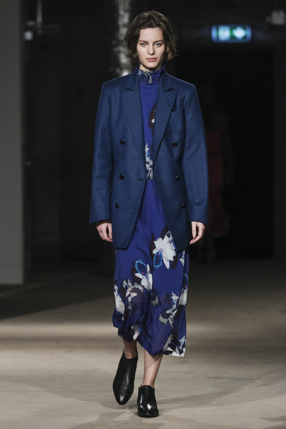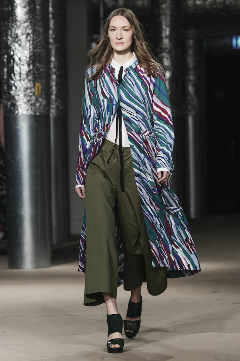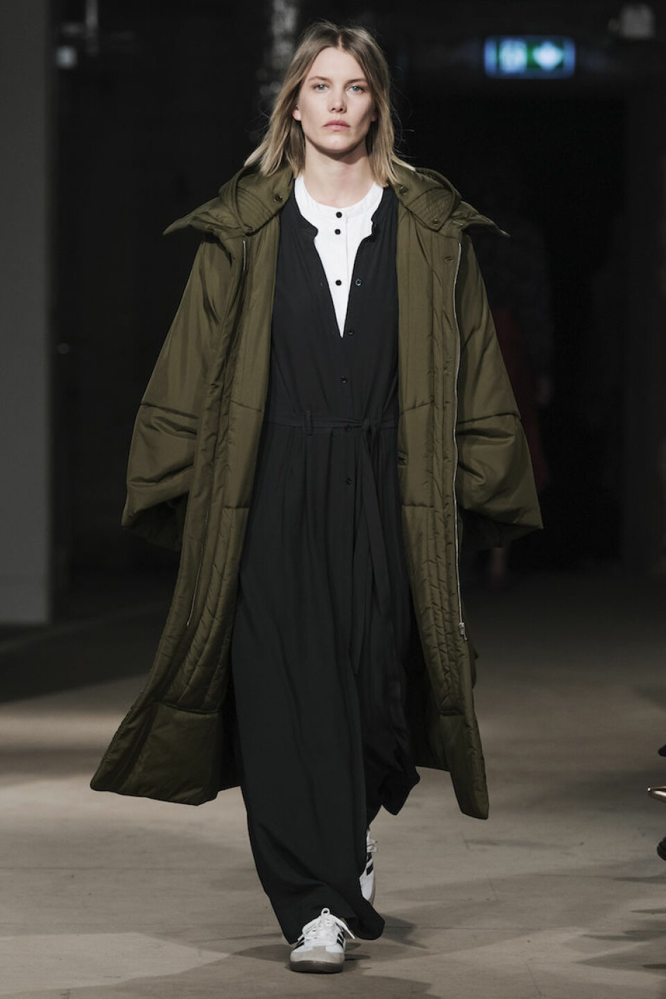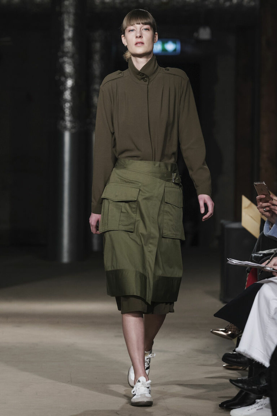 Hunkydory presenterade en höstkollektion med flera starka och lättburna nyckelplagg. Sammetskostymen är tillbaka i en mörkgrön variant – en färg som löpte som en röd (grön!) tråd genom visningen. Hunkydorys karaktäreistiska militärinspirerade återspeglas på både jackor och kappor – snyggt!