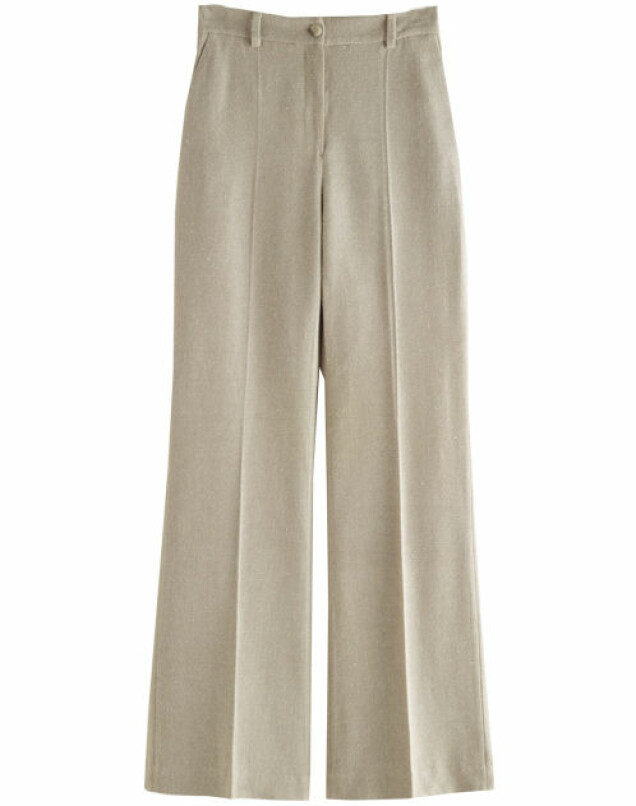 Ett par vida, skräddade kostymbyxor i silkesblandning från H&M. Byxorna har vida ben med pressveck och hög midja med förlängd linning. Du hittar dem här.