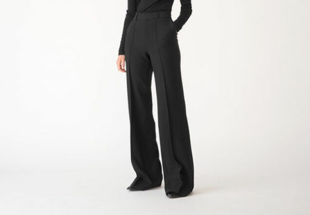Ett par klassiska kostymbyxor i modern tappning med raka, vida ben och pressveck från Carin Wester. Byxorna har hög midja, sidofickor och en passpoalerad ficka baktill. Du kan köpa dem här.