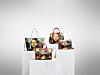 På väskorna sitter ett specialutformat Louis Vuitton-monogram med konstnärens initialer, vilket är helt unikt då Louis Vuitton aldrig tidigare har låtit göra om det klassiska monogrammet.