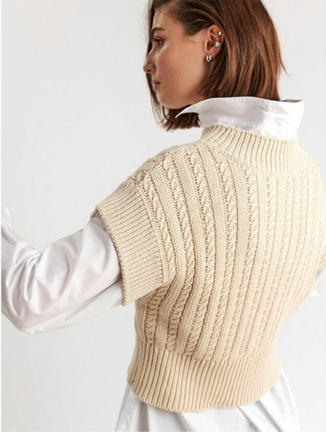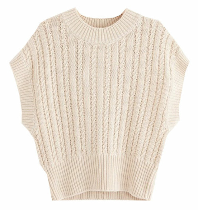 En stilsäker, grovstickad väst med en något kortare passform och bred ribbad nederkant från Lindex. Du kan köpa den här.