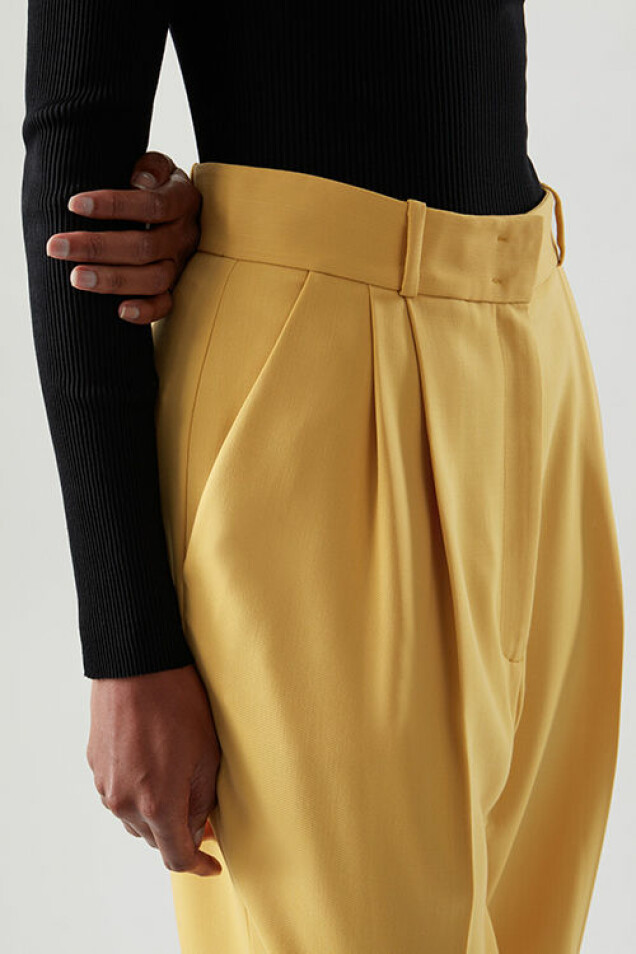 En skräddarsydd byxa i gul ton från COS. Dessa byxor är gjorda av en ullblandning och har ett avsmalnande ben. Du kan köpa dem här.