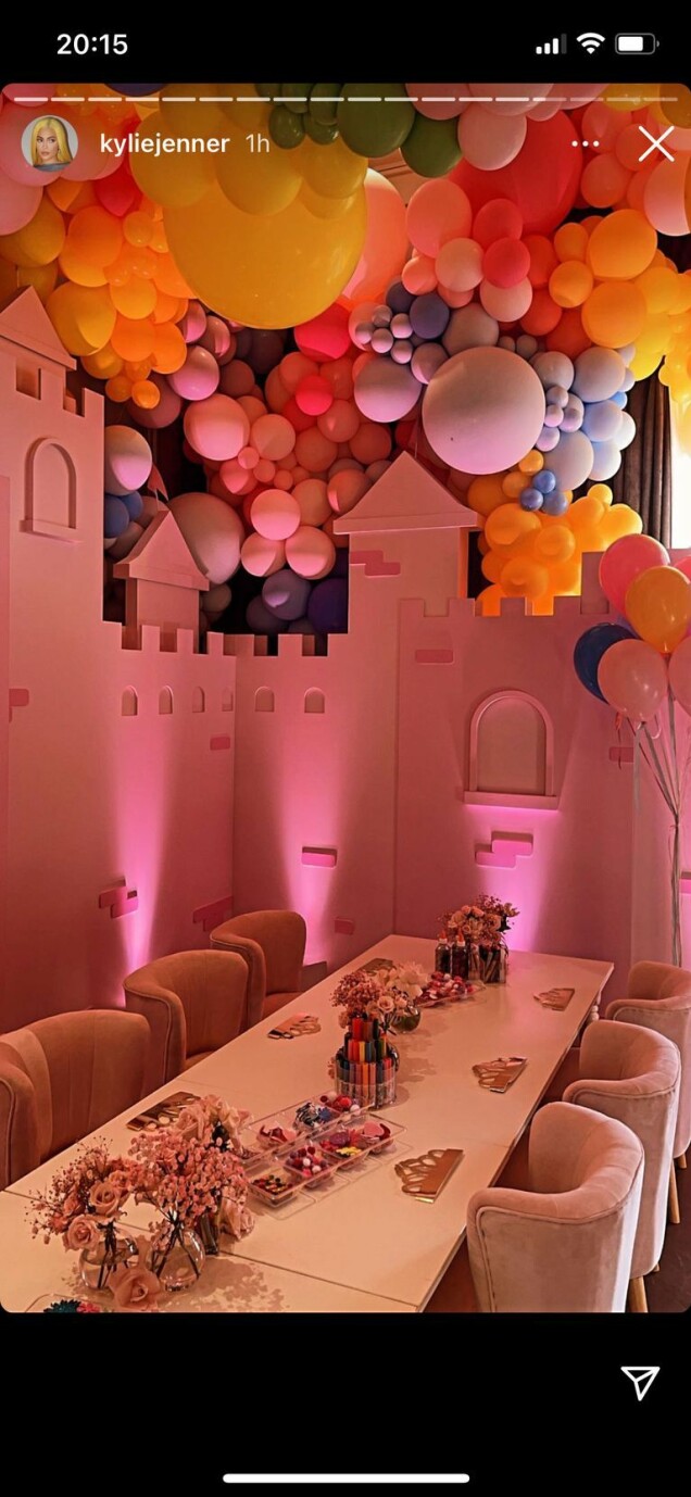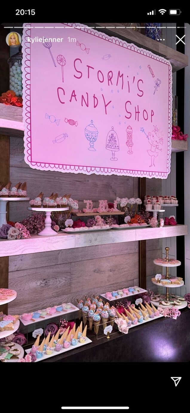 På plats har det funnits en uppblåsbar rutchkana med Stormis ansikte, det har bjudits på godsaker ur ”Stormi's candy shop” och i rummet ”Stormi's crafts” har man kunnat sitta ned vid långbord och pyssla, vilket framgått av mamma Kylies Insta story-bilder. Mat har serverats från en foodtruck och tillsammans har vänner och familj samlats sida vid sida för att sjunga Happy Birthday för 3-åringen.
