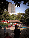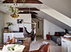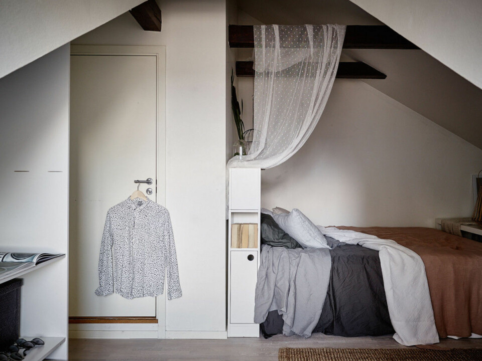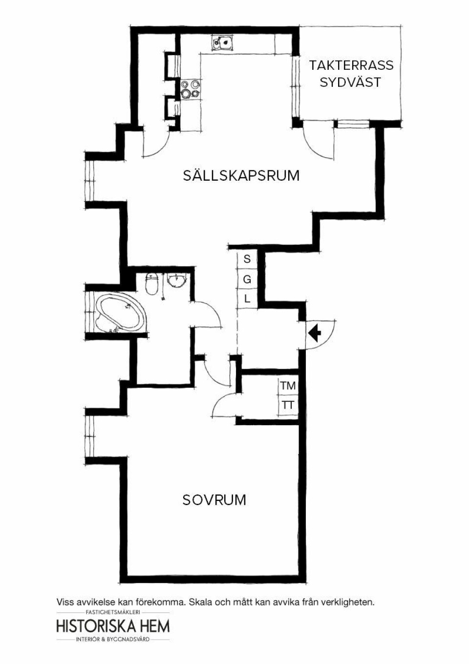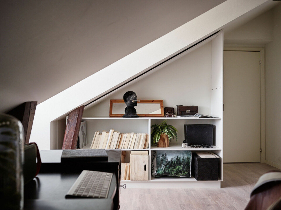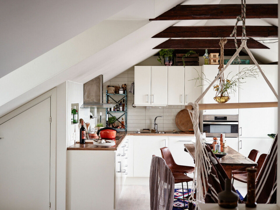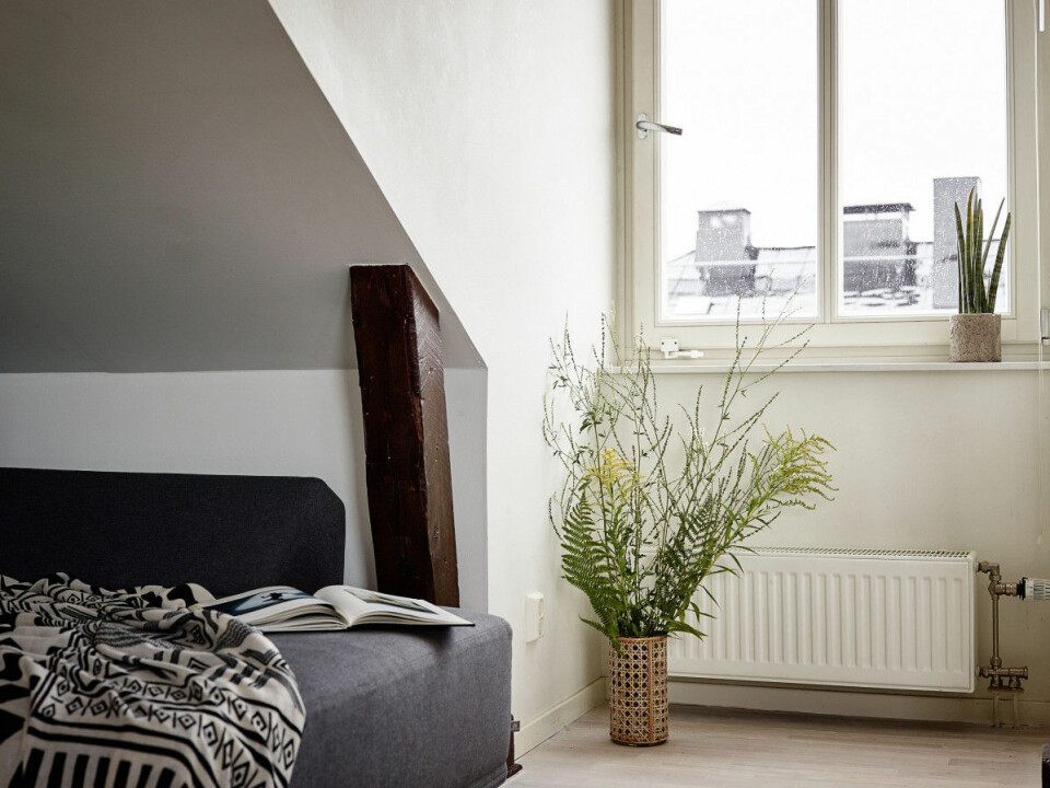 Lägenheten är en vindsvåning om 68 kvadratmeter fördelat på två rum och kök med en takterrass. Den ligger på Södermalm och enligt objektsbeskrivningen kan du som ny ägare njuta av utsikt över söders takåsar och bada i ett badkar mot ett fönster.