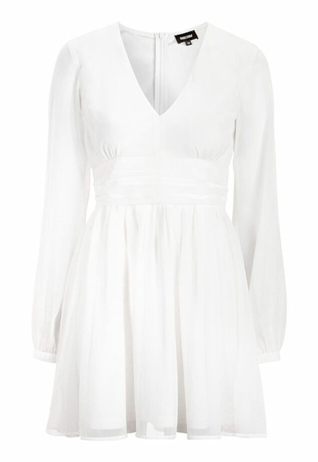 Vacker tvit långärmad klänning med markerand midja och ballongärmar från Bubbleroom. Finns att köpa här.